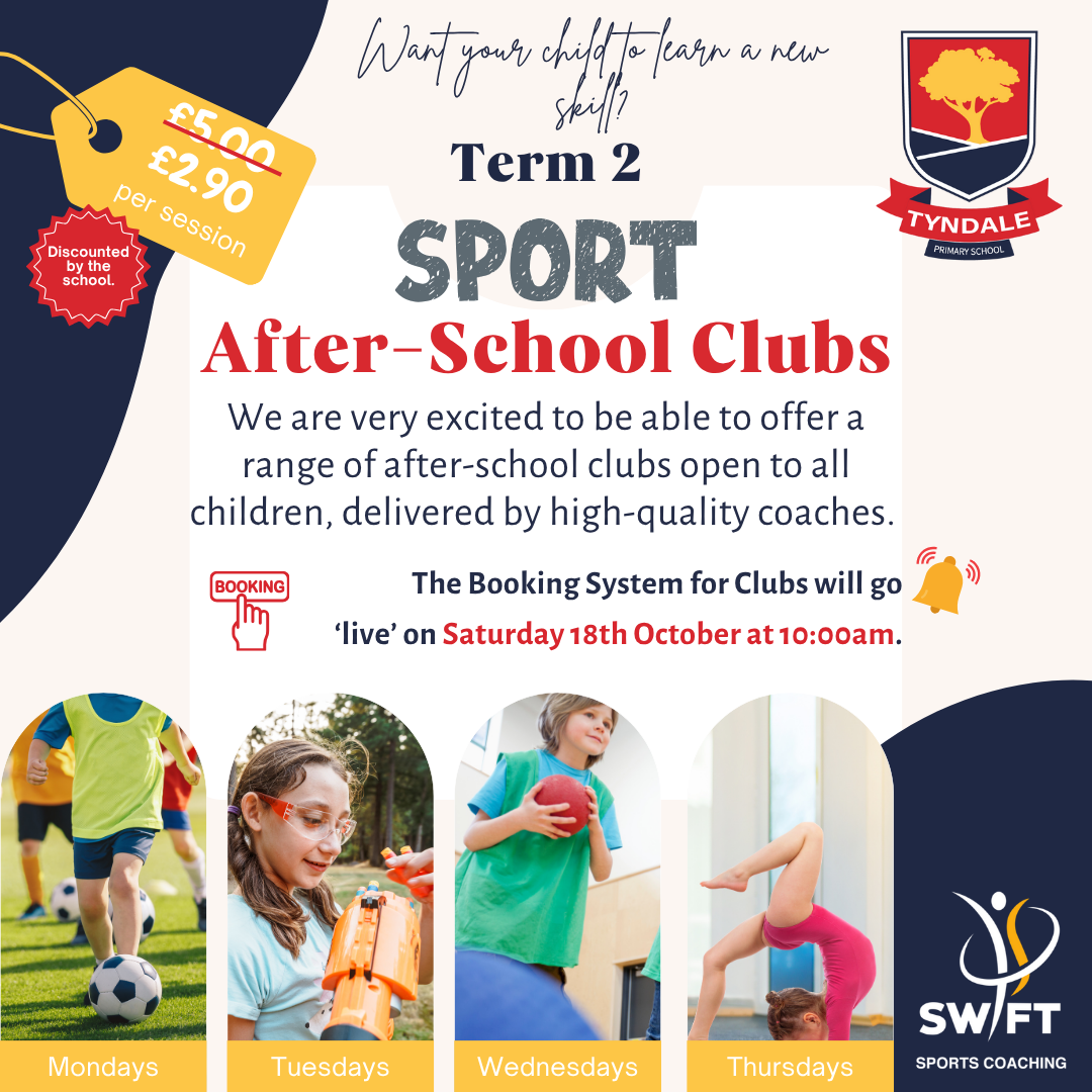 All clubs available for this term are listed below. Each club has a link for you to follow to book a space.