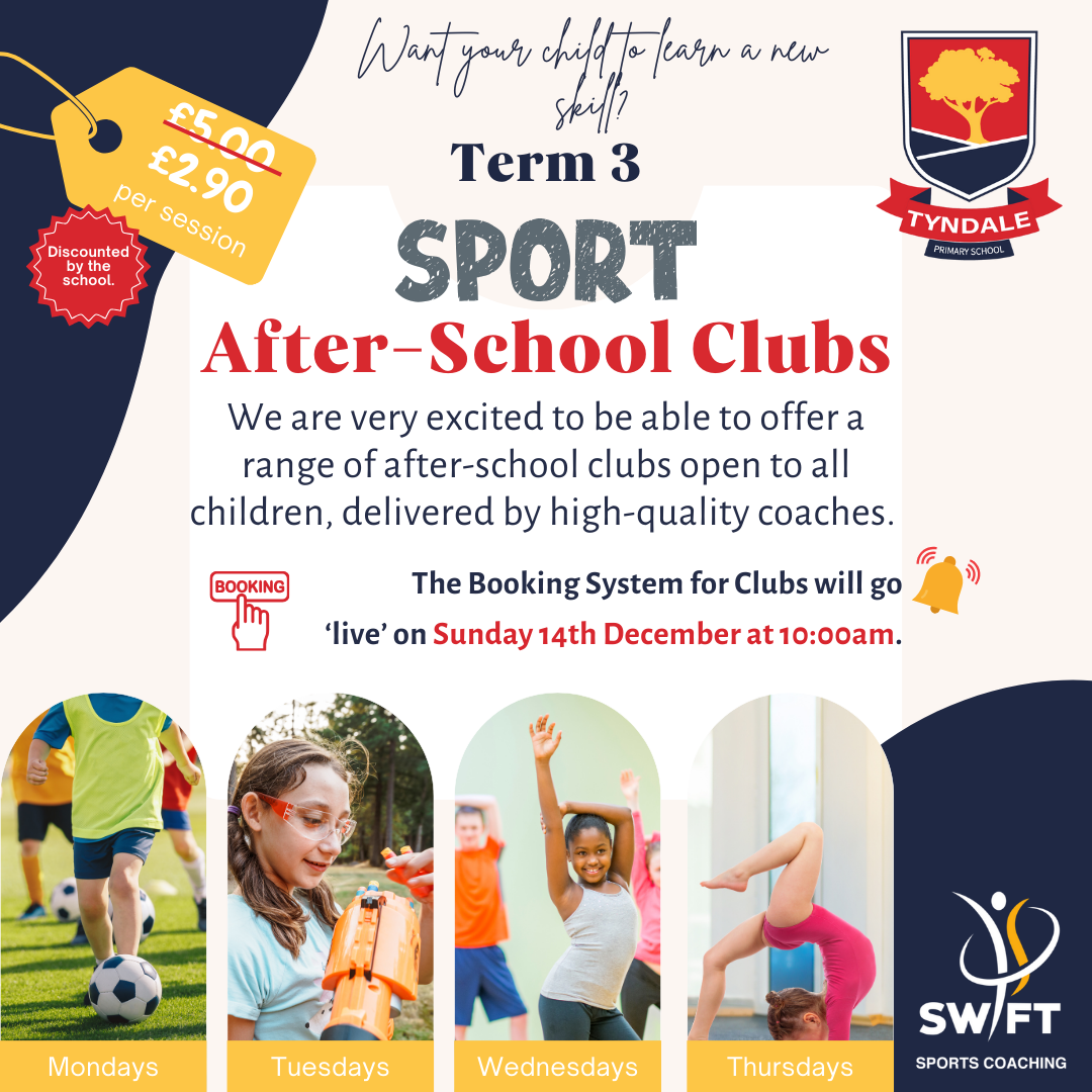 Children will need to bring PE kit, appropriate footwear and a water bottle to the clubs.