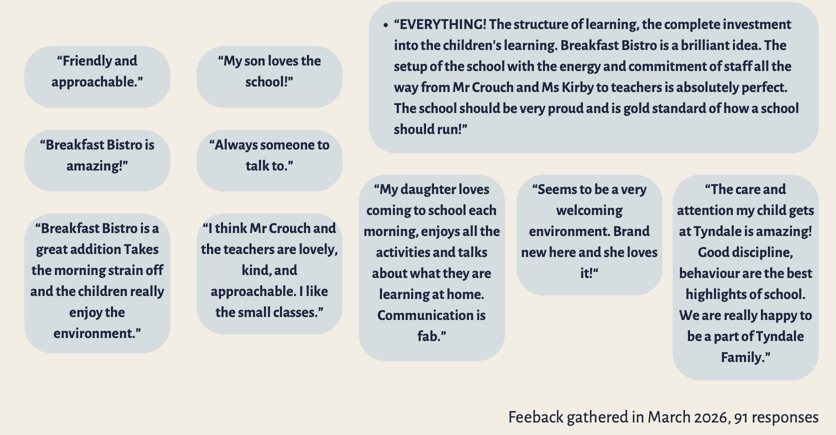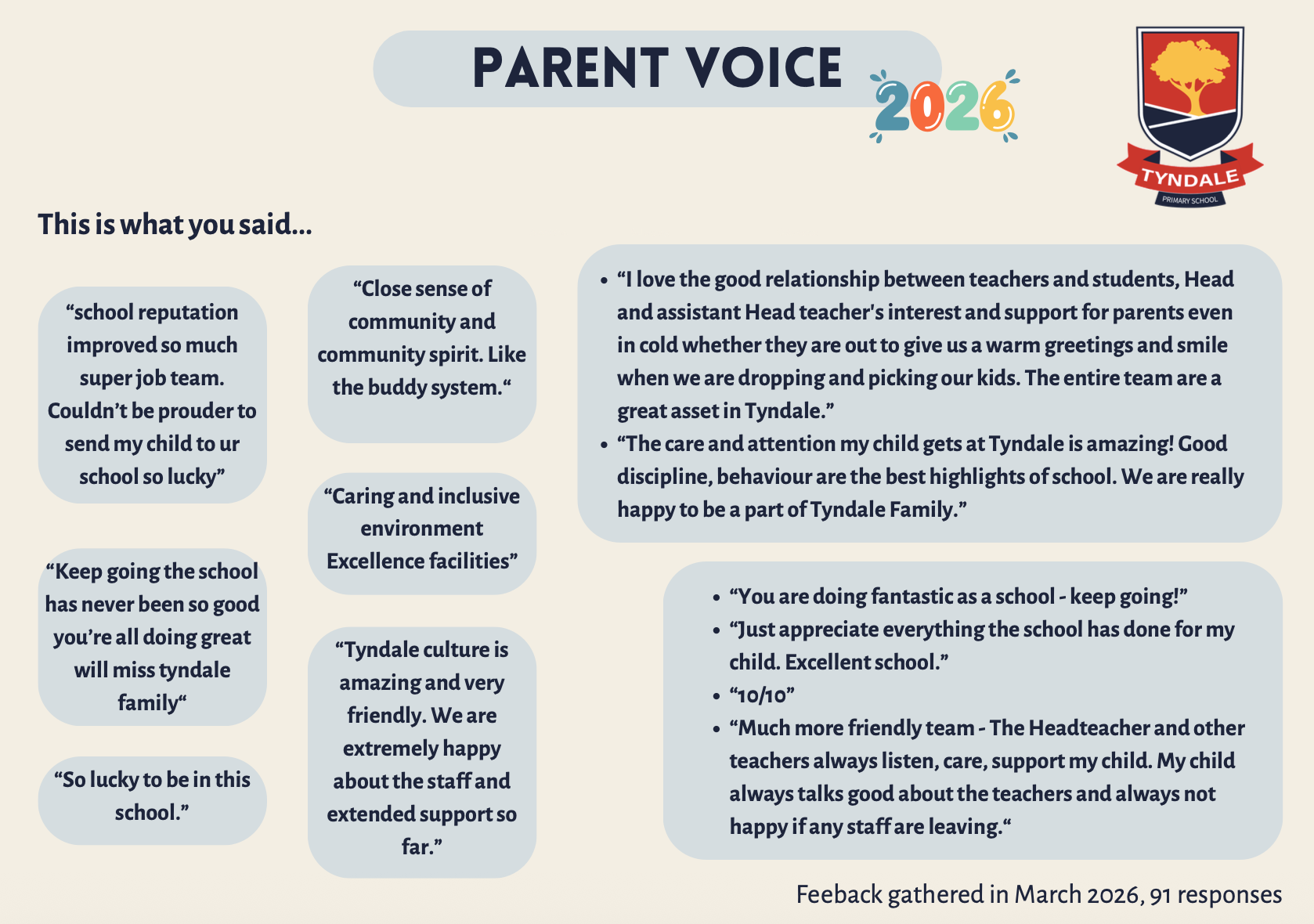 In March 2026, at our Academic Review Day and through an online form, we asked parents/carers to give us some feedback about how we were doing and what we could do to improve.