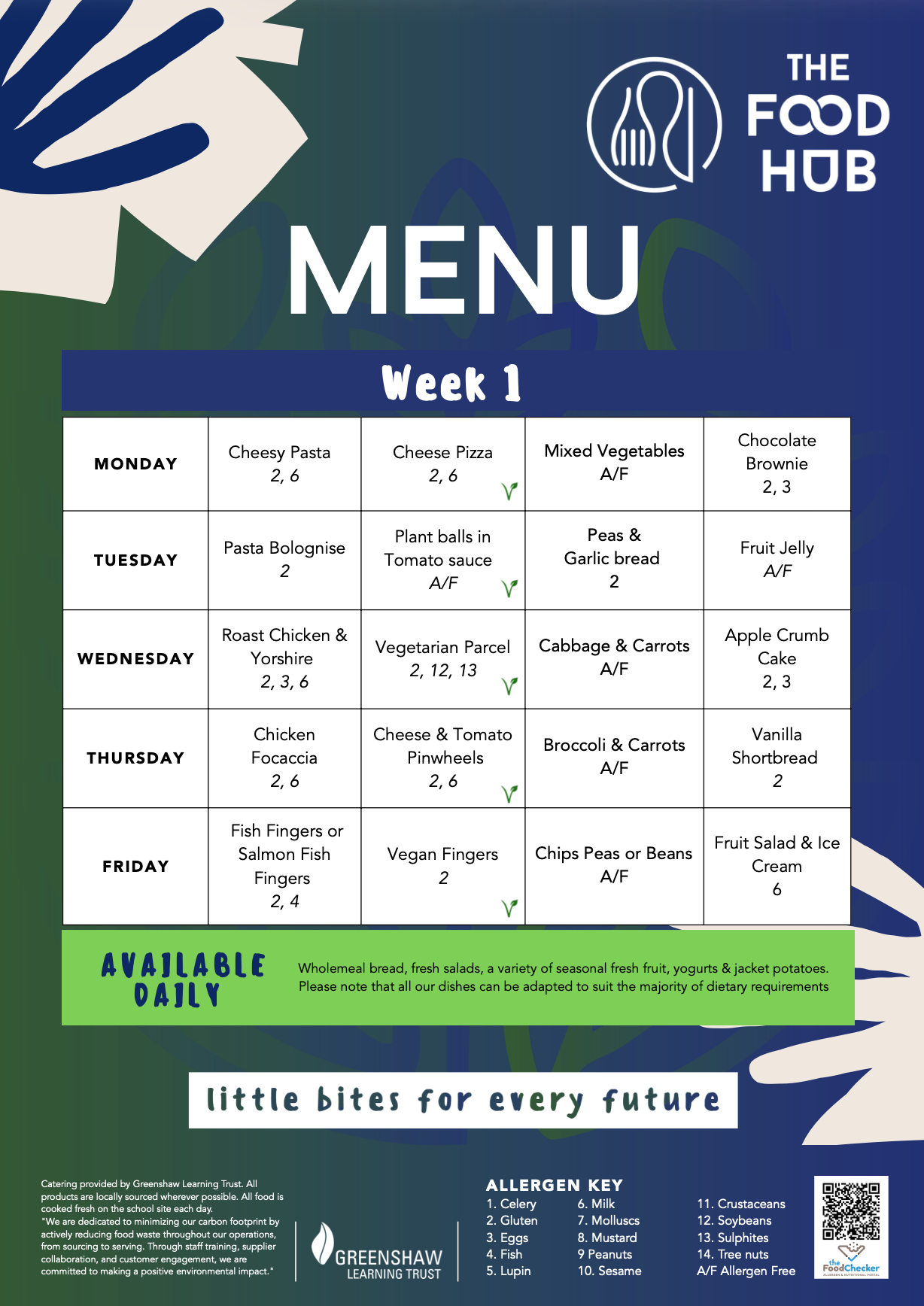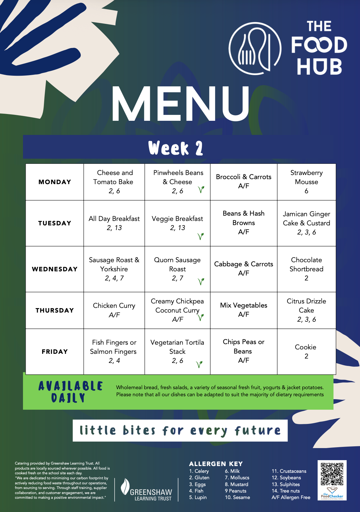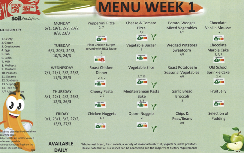Hot, delicious and nutritious meals are cooked daily onsite by our fantastic Catering Team. Our menu can be found at the bottom of this page which is seasonal and repeats over a 2-week cycle.